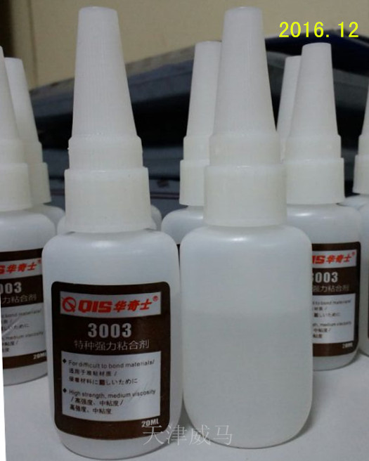 華奇士QIS 3003特種膠針對所有塑料、金屬、木材、陶瓷、玻璃、石材、橡膠等不同材質的快速、良好粘接。其粘接強度可達撕裂材質的效果,每平方厘米用上一滴膠液,拉伸強度可達25Mpa,其優(yōu)良特性還表現(xiàn)在膠水完全固化后具有高的剝離強度及耐沖擊強度。