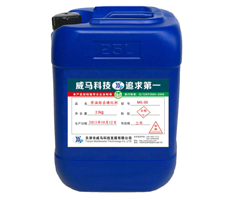 常溫鋅系磷化劑MS-30是一種低溫、低渣、快速鋅系磷化液,適合采用噴淋或浸漬方法對鋼鐵材料進(jìn)行涂裝前磷化處理。
